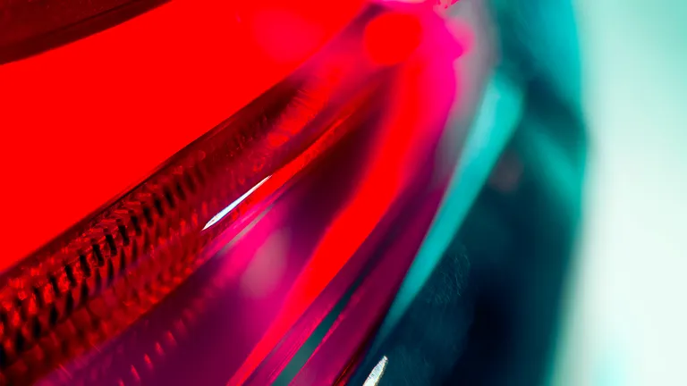 Dieses Kunstwerk ist eine faszinierende Nahaufnahme eines Auto-Rücklichts, das mit lebendigen Farben und Texturen spielt. Der Lichtschein reflektiert in kräftigen Rottönen, die sich mit sanften Blau- und Grüntönen vermischen und eine dynamische, fast futuristische Atmosphäre schaffen. Die geschwungenen Linien und die glatte Oberfläche des Rücklichts verleihen dem Bild eine moderne Eleganz, während die verschwommenen Teile im Hintergrund das Bild leicht abstrahieren und den Fokus auf das Vordergrundmotiv lenken. Diese Komposition strahlt eine Mischung aus Technik und Kunst aus, perfekt für Liebhaber moderner Ästhetik.