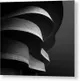 This striking image captures a captivating architectural structure characterized by smooth, flowing lines and layers, showcasing a modern design aesthetic. The building's exterior features a series of gently curved forms that radiate elegance and sophistication. The monochromatic color palette emphasizes the contrast between light and shadow, highlighting the texture of the stone-like material and creating a dramatic visual effect. The curves draw the viewer’s eye upward, evoking a sense of motion and fluidity, while the overall composition conveys a feeling of grandeur and innovation. This artwork would be ideal for display in contemporary spaces such as modern offices, upscale restaurants, or art galleries. Its architectural theme and unique perspective make it a perfect fit for settings that embrace modern design and aesthetics, serving as a conversation starter in any interior space.
