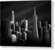 This stunning black and white photograph captures the dynamic skyline of a vibrant city. The image showcases an array of modern skyscrapers, each with unique architectural styles, highlighted by strong contrasts between light and shadow. The sharp pyramid shape of the prominent Transamerica Pyramid stands out against the backdrop of the city's diverse buildings, creating a striking silhouette. The interplay of light streams through the scene, adding depth and drama, while the absence of color focuses attention on the intricate details and textures of the structures. This urban landscape exudes a sense of sophistication and modernity, making it a perfect statement piece for any contemporary interior. This artwork can greatly enhance the ambiance of modern spaces such as living rooms, offices, or reception areas. Its monochromatic scheme makes it versatile for various design palettes, while its dramatic beauty adds a touch of elegance. Placing it above a sleek sofa or in a well-lit hallway can draw the eye and inspire conversation.